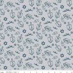 NEW! 8 Nights, 8 Lights Dreidel Toss Silver Fabric by the Yard