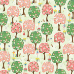 Step into a whimsical world with Enchanted Spring Blooming Trees Green Fabric by the Yard.
