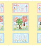 Delight in cheerful birds, cozy birdhouses, blooming trees, and elegant tulips, while you celebrate the Spring season with this enchanting fabric panel.