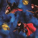 Take flight with this thrilling Quidditch fabric featuring wizards and witches in dynamic action across a starry night sky!