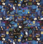 Harry Potter Words Blue Wide Back Fabric by the Yard