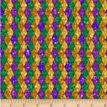 This high-quality fabric features a lively diamond pattern in rich hues of purple, green, and gold that captures the essence of Mardi Gras.