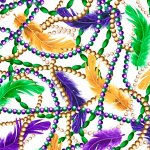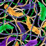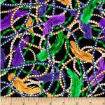 Mardi Gras Feathers & Beads Black Fabric by the Yard