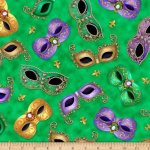 NEW! Mardi Gras Masks Green Fabric by the Yard