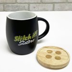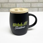 Cozy ceramic mug imprinted with the Stitch it! Sisters logo.